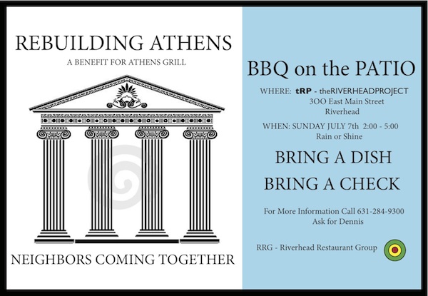 Bring a dish to share with friends and bring a check to donate to Athens Grill restaurant, which suffered major damage from a fire last week.