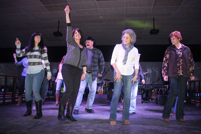 By 8 p.m., the real dancing started. As customers partied and knocked down pins on the lanes a few feet away, Stagecoach took the stage to belt out country classics.