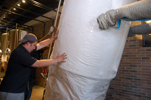 Each fermentor, which were made by the Wasington-based Marks Design and Metal Works and cost about $12,000 a piece, yields about 15 barrels of beer, Griffiths said. He expects to have the containers hooked up to a refrigeration system and functional by Monday.