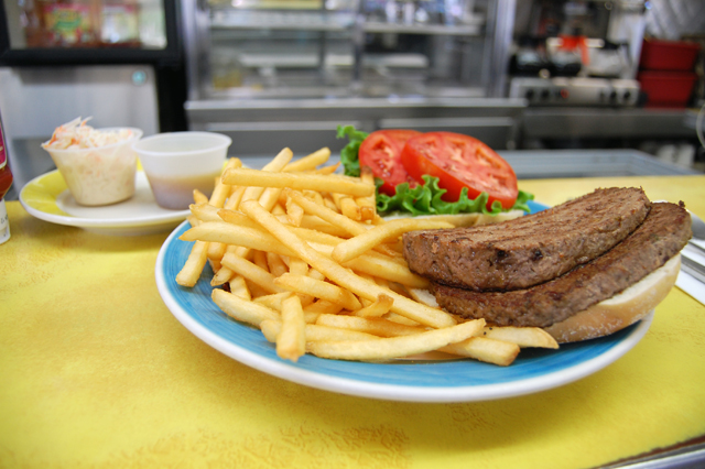 Two large rectangles of homemade meatloaf are served on a roll with lettuce, tomato and coleslaw with fries and gravy on the side ($8.50). Go easy on the gravy and you will have plenty left over to dip your french fries.