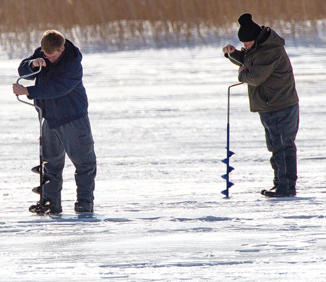 When to go may be a problem because you need four inches or more of solid ice for safety’s sake. An experienced ice fisher like Southold’s Tom Schlichter (www.outdoortom.com) recommends boring test holes as your work your way out onto the ice, fishing with a buddy or two, and tying a couple of ice picks on your person in case you have to pull yourself to safety after falling through. Also, courtesy dictates that any fishing holes you cut with your augers get filled back after a day’s fishing so that the ice re-forms overnight.