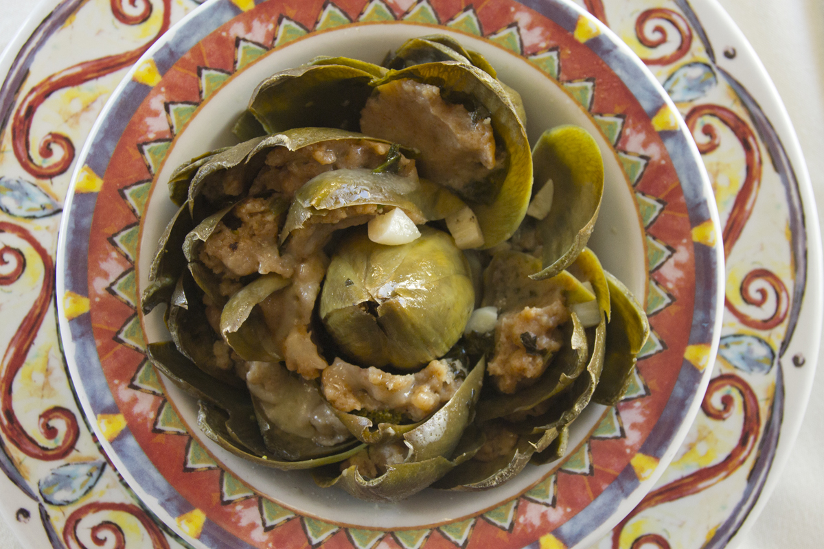 In between the artichoke leaves, Pennacchia stuffs fresh herbs, breadcrumbs and pecorino roman cheese. But it’s not what’s in the artichoke that really matters, he said. It’s the artichoke you use.