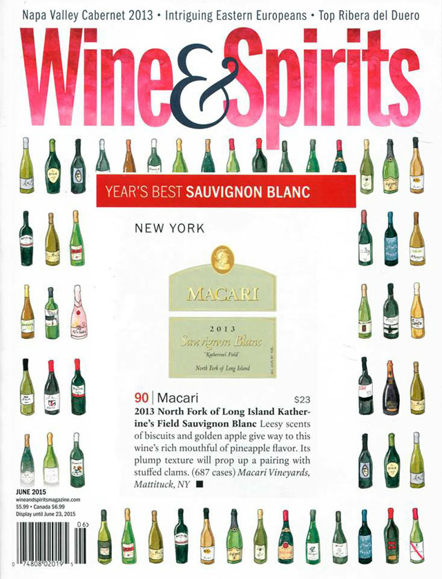 In a review of Macari’s sauvignon blanc, judge Patrick J. Comiskey wrote that “Leesy scents of biscuits and golden apple give way to this wine’s rich mouthful of pineapple flavor. Its plump texture will prop up a pairing with stuffed clams.”
