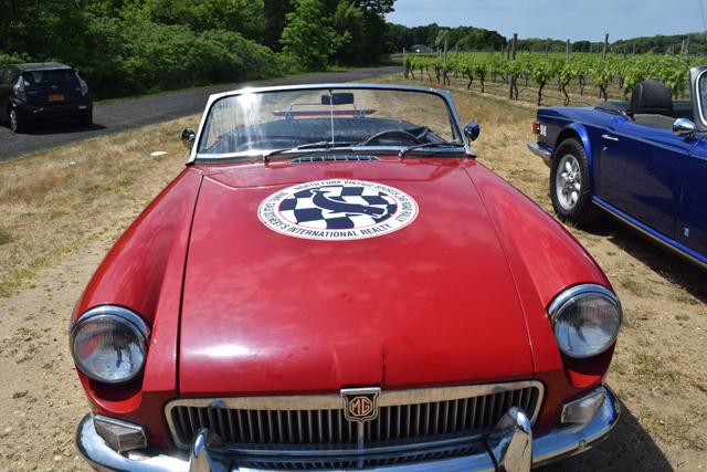 Shelton did not drive his 1964 MGB in the rally — the exhaust pipe fell off and he spent the morning reattaching the piece. But he joined his fellow European car enthusiasts at Pugliese Vineyards in Cutchogue to show off the vehicles and chat with spectators. Drivers were then treated to lunch from Lucharito’s.