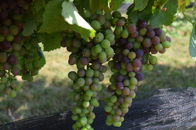 Some North Fork red varietals began to change colors this week, a process known as veraison that is the first sign the fruit has ripened.