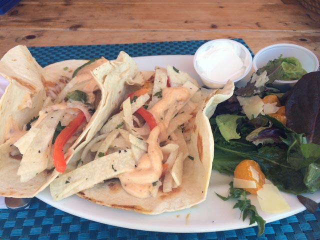 There is no separate lunch and dinner menu, so if you feel like a $39 filet mignon for lunch, then go for it. But if you are looking for something a tad lighter, we recommend the mahi mahi tacos served with a citrus salad ($18).