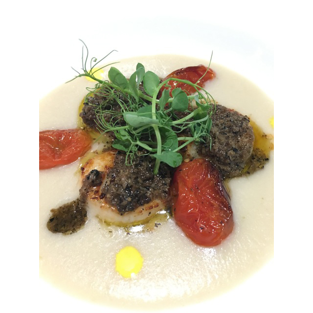 On the menu: Peconic Bay scallops with Umbrian black summer truffles and white bean purée