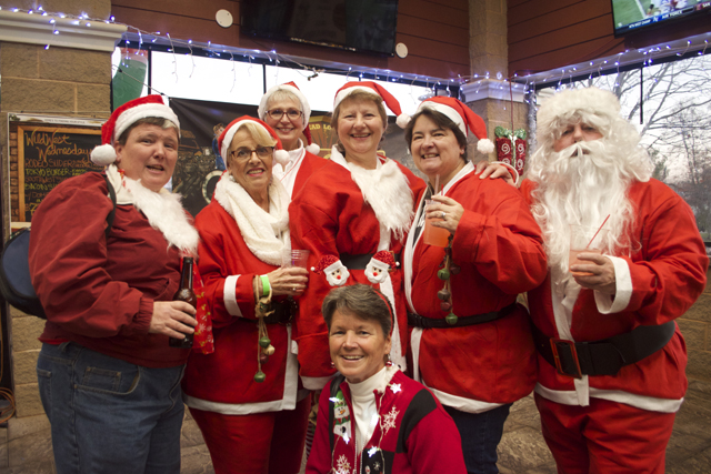 Faux-fur trimmed red suits and battery-operated necklaces were the preferred attire at the second annual Riverhead Santacon, held at downtown bars and eateries on Saturday.