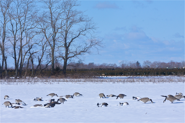 At first glance, the above photo appears to be a field of Canada geese searching for a bit to eat in a frozen farm field.