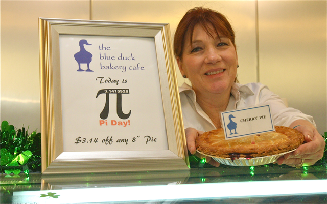 Blue Duck Bakery‘s Nancy and Keith Kouris are celebrating Pi(e) Day today, March 14, with a deal on their tasty confections.