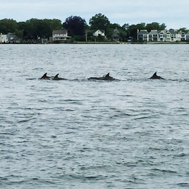 The dolphins were here and then gone, but those on the boat were thrilled by their brief presence.