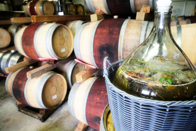 To increase the varieties of wild yeast used, Olsen-Harbich and Bedell staffers contribute a piece of North Fork flora, maybe a blade of grass or a foraged beach plum, and add it to some fresh pressed grape juice. About five gallons of this mixture are added to every 1,000 gallons of wine.