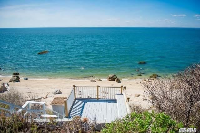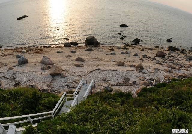 Nestled in the hills off Sound Drive, the property, which is about two-thirds of an acre, features steps to a private beach below the bluffs.