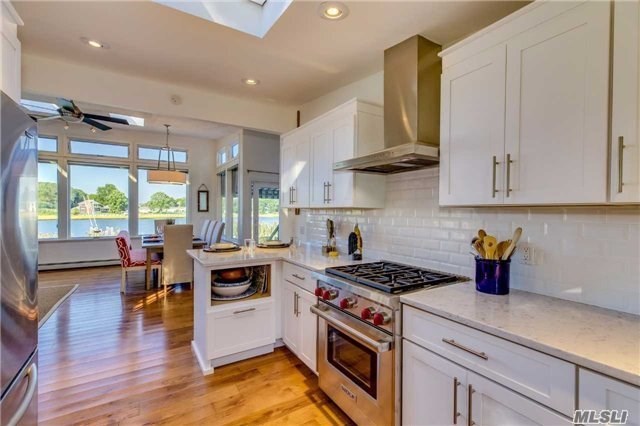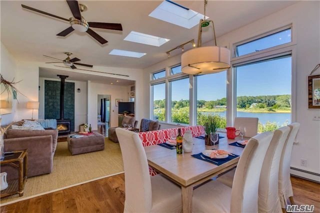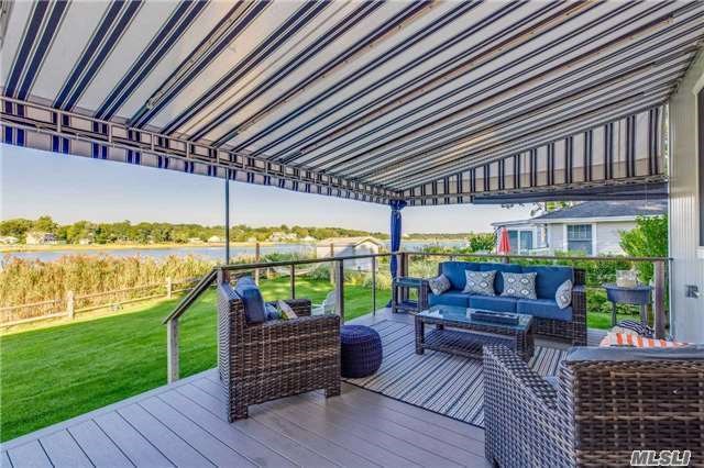 “It’s the ultimate summer waterfront home,” said listing agent Marie Beninati, of Beninati Associates. “Everything is focused on the water. It pushes you outdoors.”
