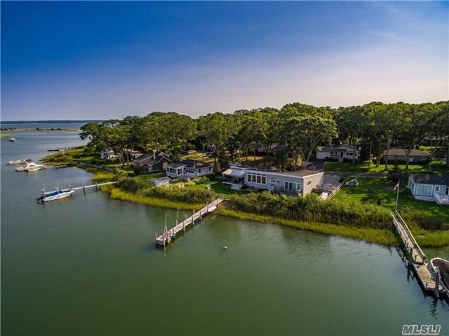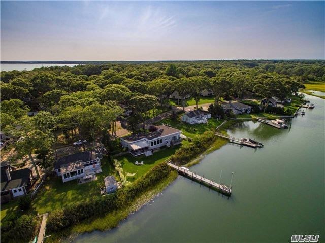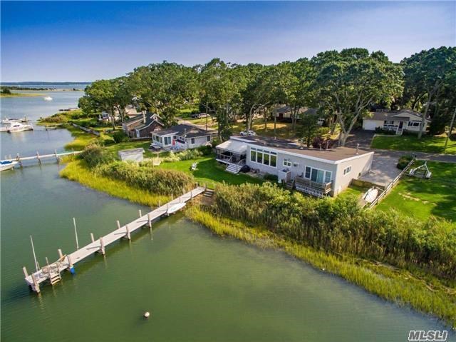 This waterfront home in Southold is perfect for boat lovers.