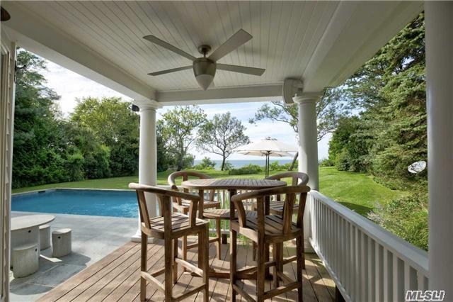 A mile long driveway leads to the front door of this stunning waterfront residence in Mattituck and the outside of the gated estate is enough to entice beach lovers to make an offer.
