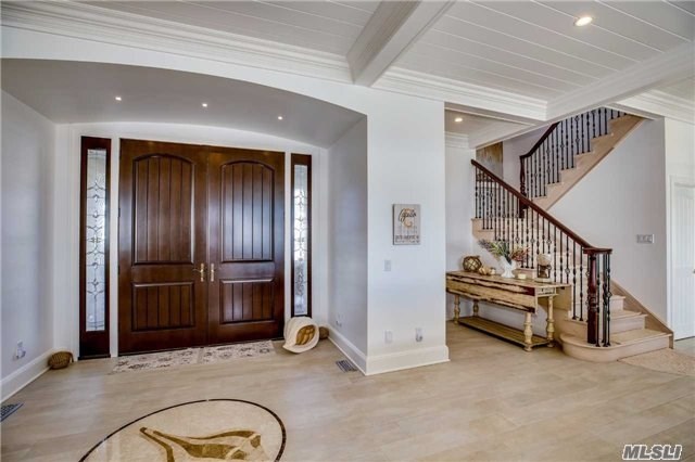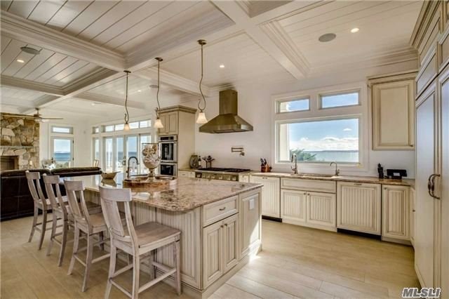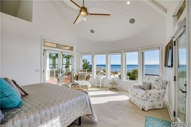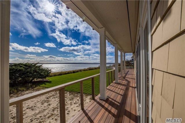 Captivating panoramic views of the Peconic Bay provide the stunning backdrop to this outdoor oasis that includes an impressive 227-foot-bulkhead, wrap-around deck and dual outdoor showers all mere steps away from the beach.