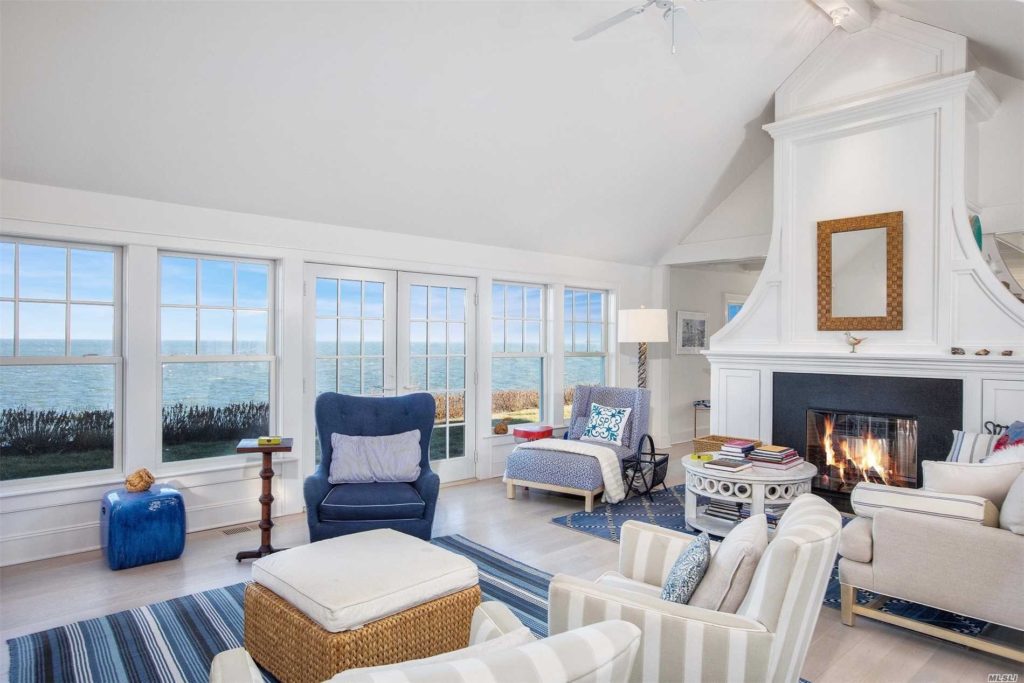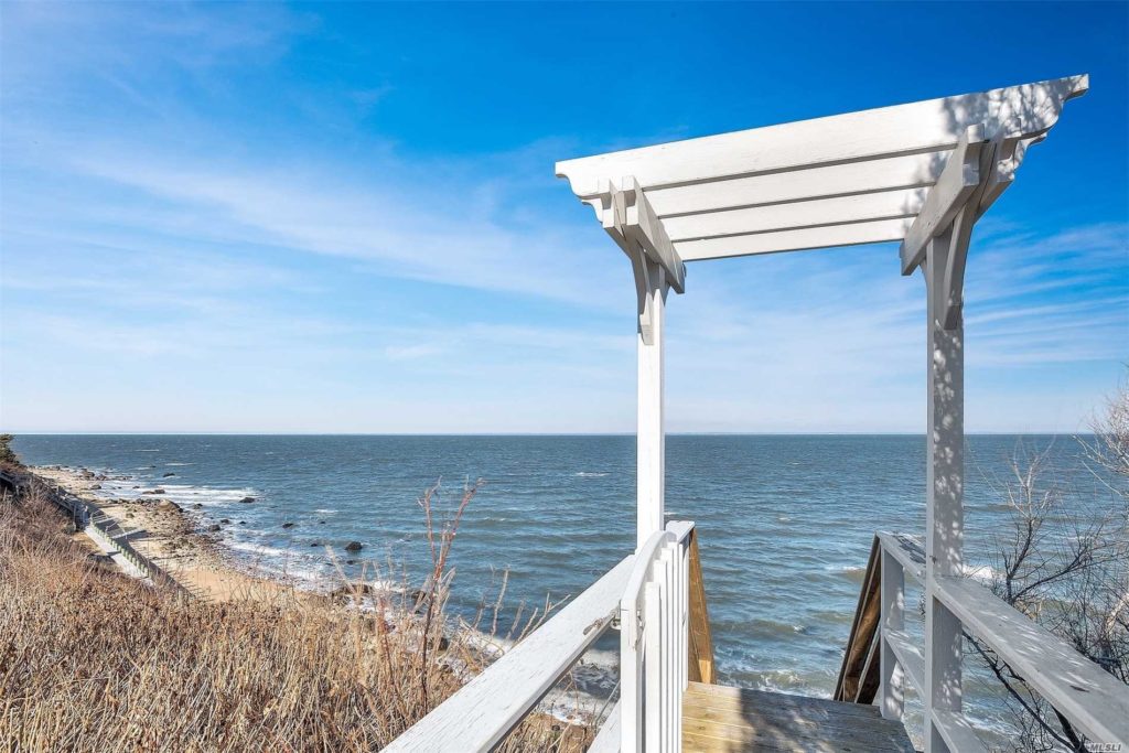This home is ripe for entertaining. The manicured .72-acre lot includes a separate poolhouse situated near outdoor recreational areas that include a heated pool, blue stone patio and a staircase leading down to 148″ of beachfront.
