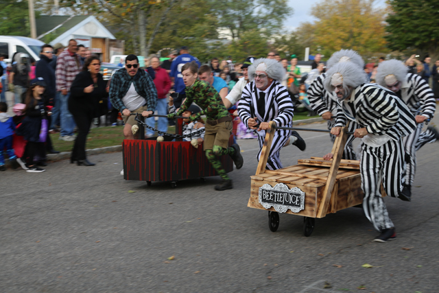 Editor’s note: this event has been cancelled this year. Folks will be racing homemade cardboard coffins at 1 p.m. on Saturday, Oct. 27. The coffin races have teams of four costume-wearing “pallbearers” push a makeshift coffin, while the fifth member of the team pretends to be the deceased. If you’d like to participate, check-in is at noon. Visit halloweenfestriverhead.com to learn more.