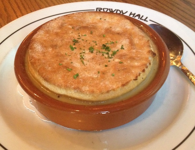 Rowdy Hall is known for its classic comfort food. One of their signature favorites for this time of year is the chicken pot pie with roasted white and dark meat, carrots, peas, onions, creamy chicken gravy and a flaky biscuit crust.