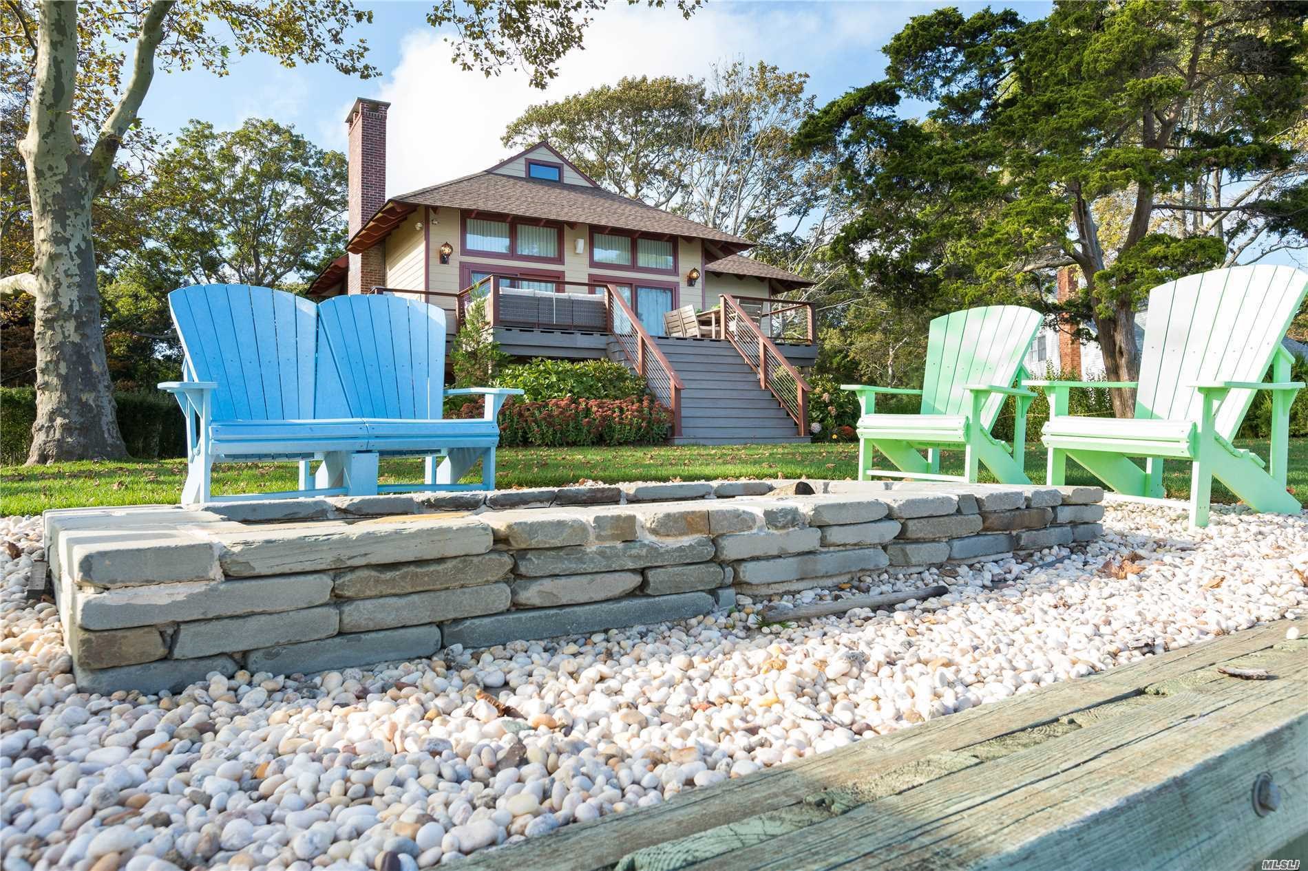 There are so many ways to enjoy sweeping views of Peconic Bay, from the large deck off the formal dining room to a separate outdoor dining space to the built-in fire pit overlooking the beach. Cozy up on an Adirondack chair and take in the sea breeze or take advantage of the home’s beachfront positioning with kayaking, swimming and other waterfront activities.