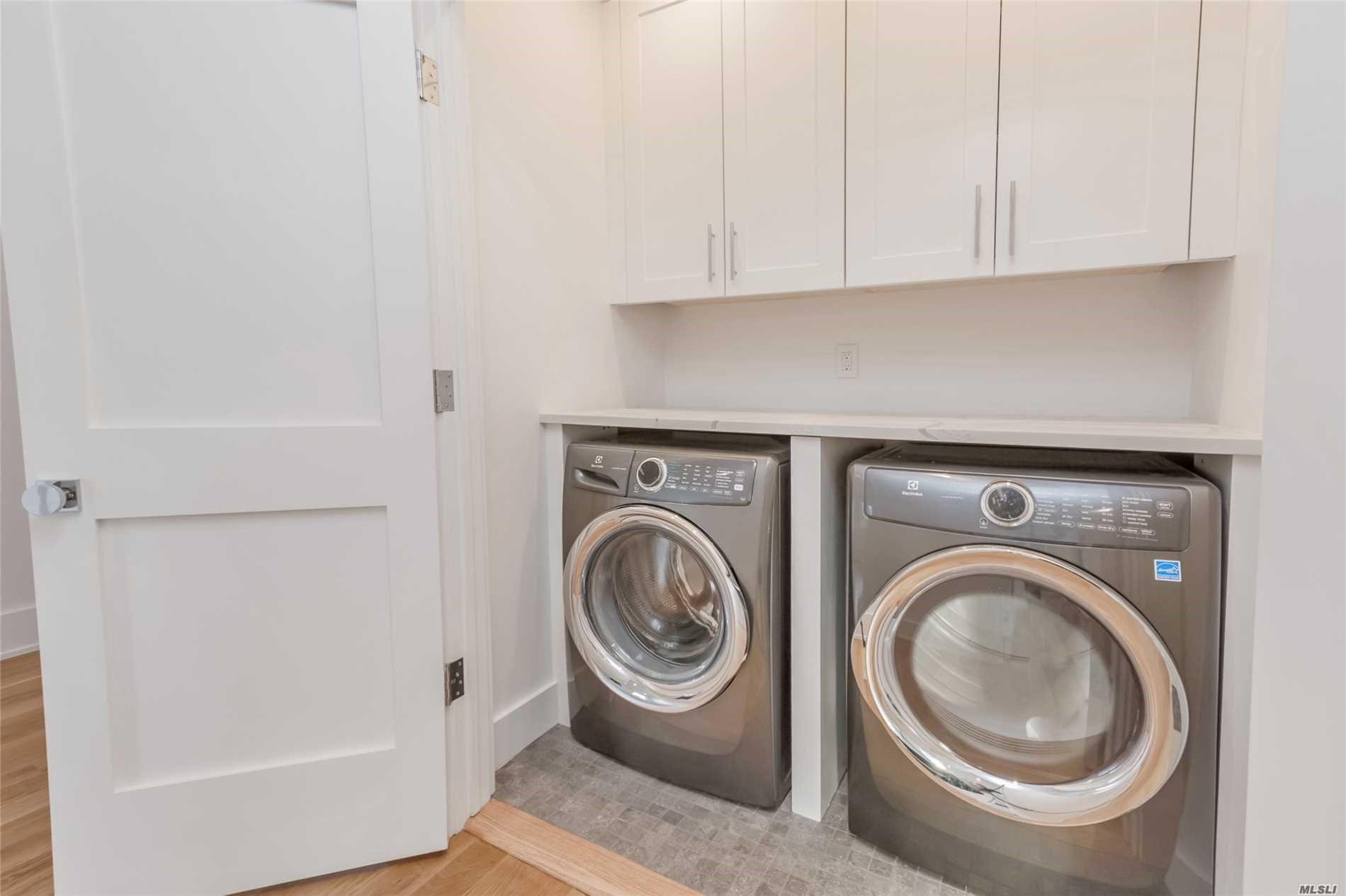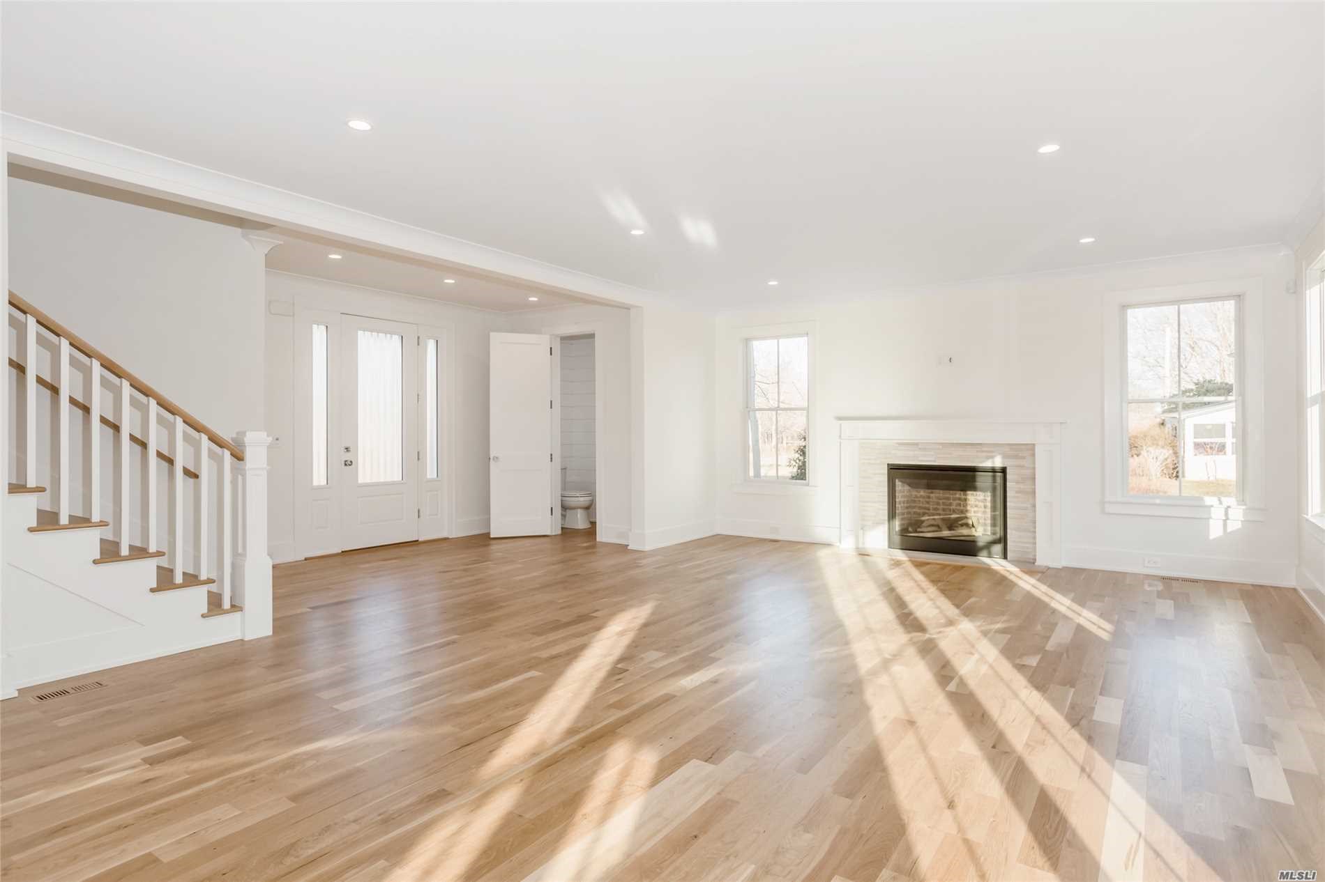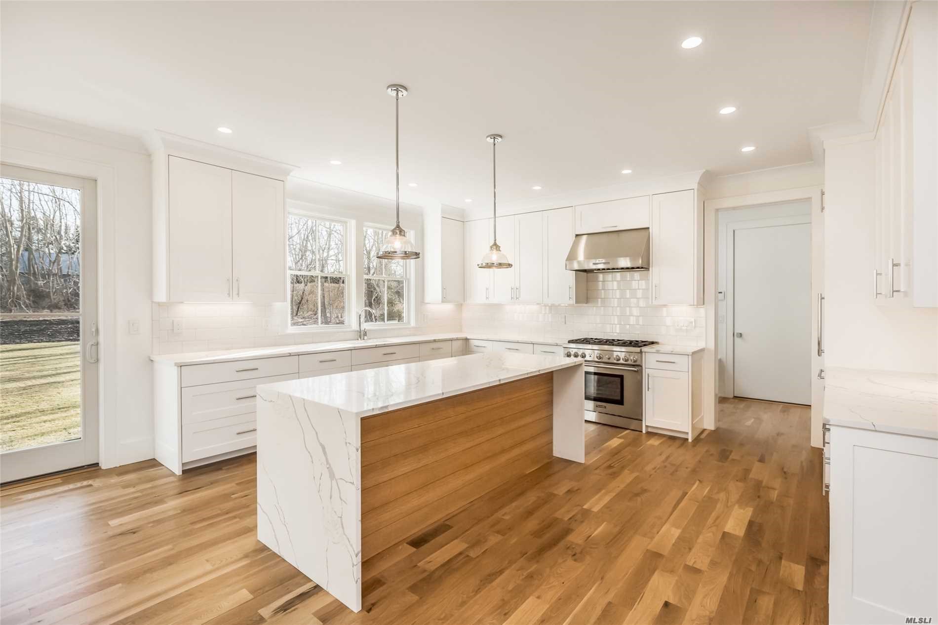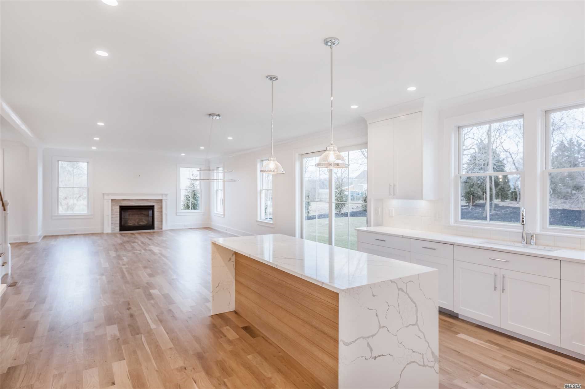 “The open main floor plan allows the chef to communicate with guests, view the fireplace and the big game from the food prep area,” Kusa said. “There is easy access to the backyard gardens through a sliding door. This amazing oversized door lets the North Fork sunshine in, plus allows easy access for carrying a tray with all your barbecue fixin’s outside for al fresco dining.”