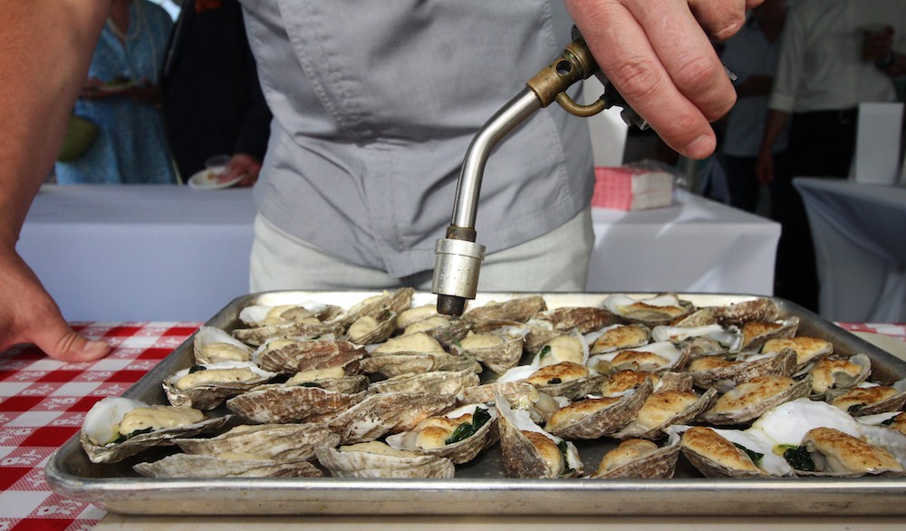 Robby Beaver, owner and chef of the Frisky Oyster in Greenport prepares Peconic Gold Oysters Friskafella. (Credit: Elizabeth Wagner)