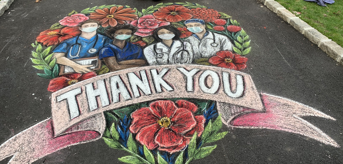 Hoblin hopes that the positivity continues and inspires others to do their own kind works as well. And she has plans to make more chalk artwork, thanking countless others for their contributions during this time.