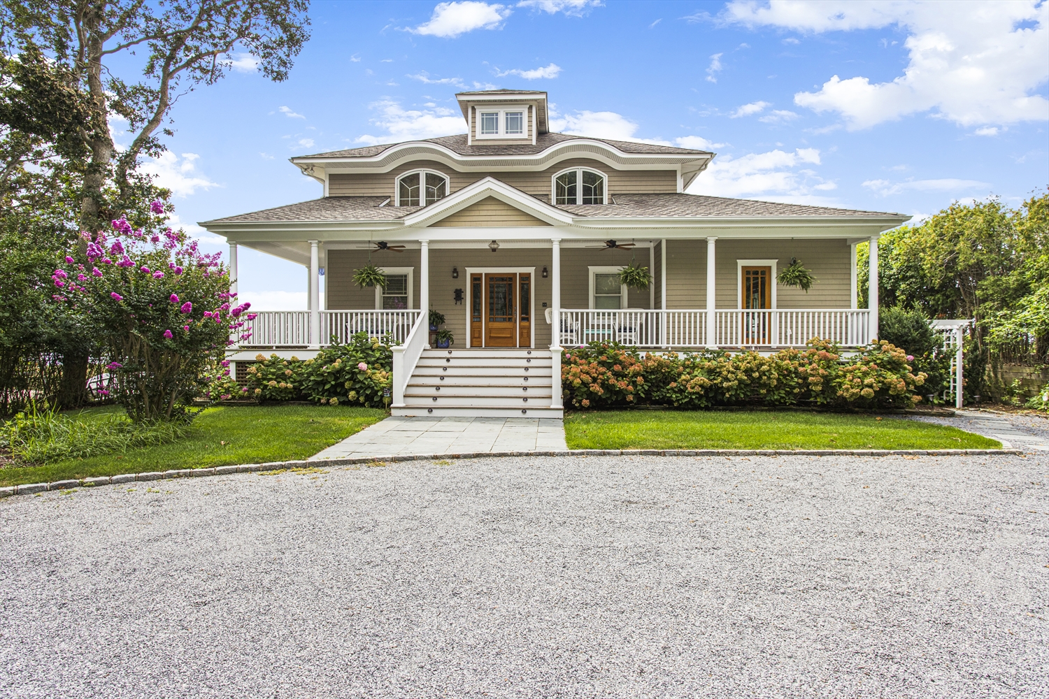 It’s easy to picture yourself sitting on the back porch of this Cape Cod-style home wrapped in a cozy blanket and enjoying a hot cup of coffee while looking out onto Cutchogue’s Broadwater’s Cove.