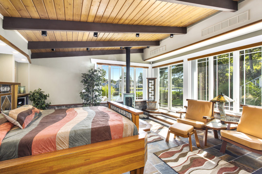 All of the woodwork in this Usonian waterfront home built in 1967 was custom-built on-premise. “The design detail and quality of construction in this home are just incredible and thoughtful,” said listing agent Sheri Winter Parker of Corcoran.
