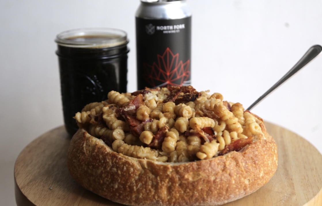 The base of this recipe is the delicious beer cheese made with North Fork Brewing Company’s Dark Side of the Maple. The porter gives a delicious, deep flavor to the cheese sauce, and then the dish is topped with bacon and more cheese. Is there a better combination out there?