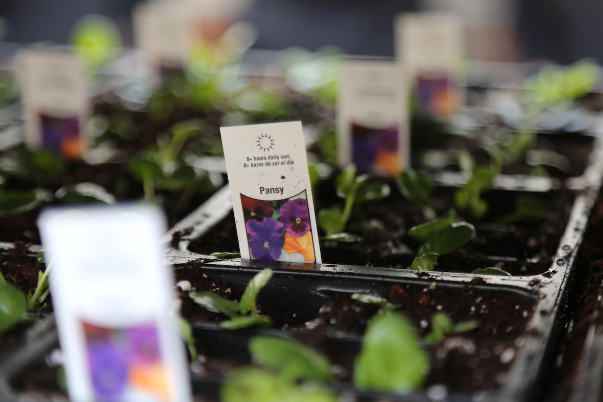 There’s also the planting. This week, it was all about pansies. And it’s done with a machine worthy of Willy Wonka’s chocolate factory: A black seedling tray gets filled with soft soil through a shaking motion, then from there, staff members work with ease to perfectly place baby plants in each square. It moves down the conveyor belt and is showered three times with water before a label is placed in each square.
