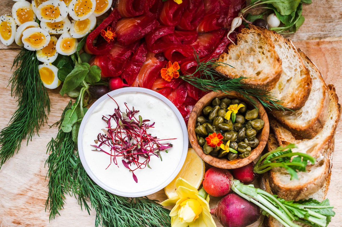 BLOOD ORANGE & LOCAL BEET CURED SALMON BRUNCH BOARD