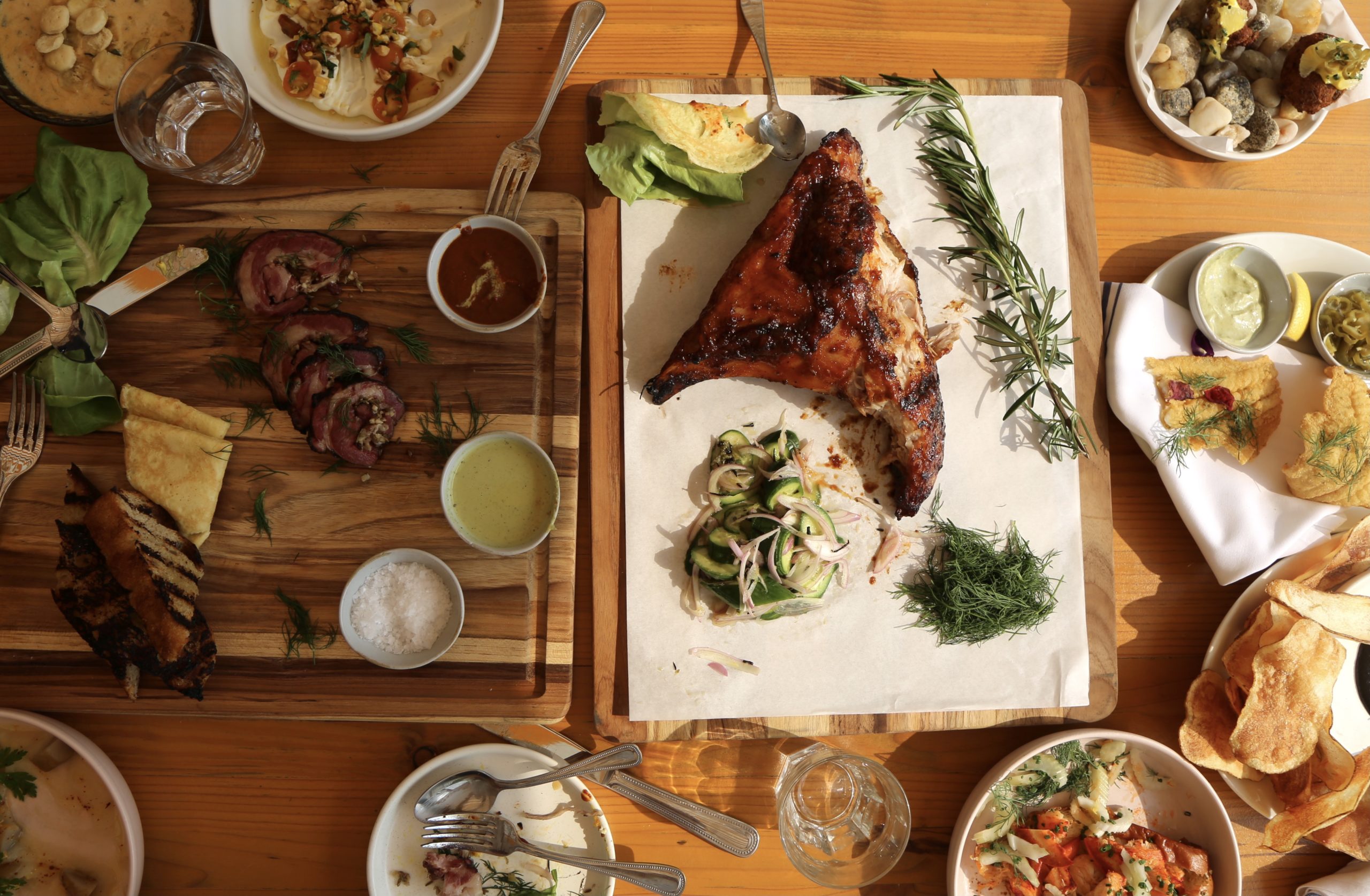 Also on the table was swordfish bone marrow served with a green curry rub, sourdough crostini and pickles and a fritter made from fish roe and topped with a saffron aioli. In the center was a wooden slab with a huge chunk of barbecue-slathered swordfish collars.