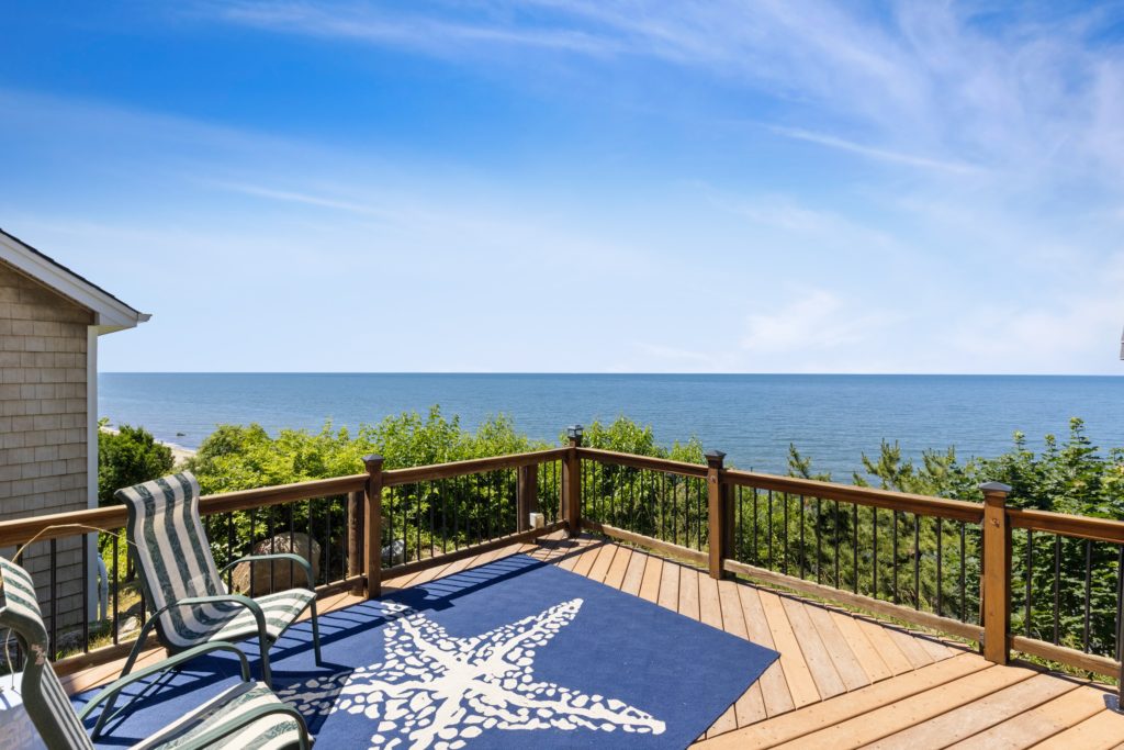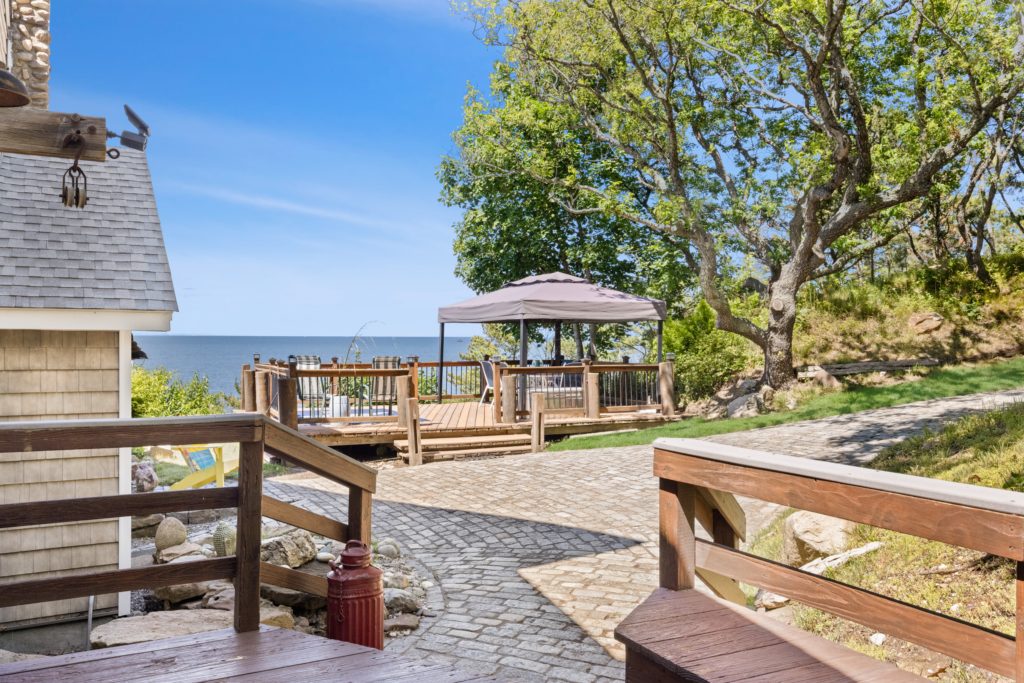 “The way the house is situated low on the bluff but high enough to get a magnificent water view and amazing sunsets without worrying about being directly on the water is ideal. The tiki hut is a tremendous asset providing beach-side space to entertain friends and family. And the top viewing deck is perfect for dining and evenings spent watching the sunset or mornings sipping coffee and reading a book,” said listing agent Cecile Raoult of Daniel Gale Sotheby’s International Realty.