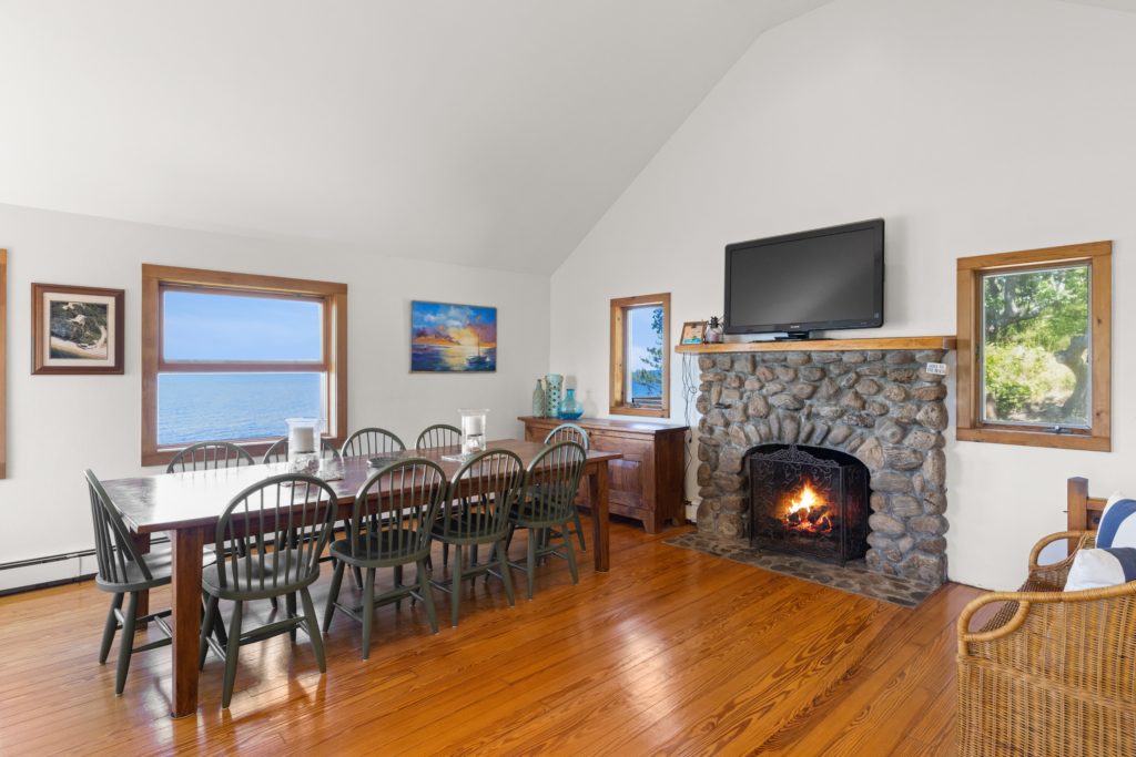 “The interior architecture of the home is unique with custom-made feels and favors water views at every turn. The man-made river rock fireplace located in the dining room adds a beautiful focal point of warmth,” added Raoult.