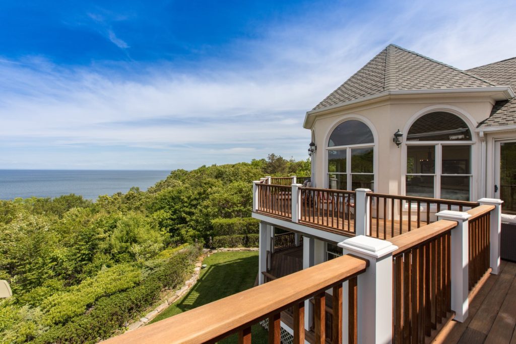 This Riverhead home perched high above the Long Island Sound provides dramatic and unobstructed water views boasts five bedrooms, six bathrooms, and many luxurious living spaces artfully laid-out across 5,600 square feet.