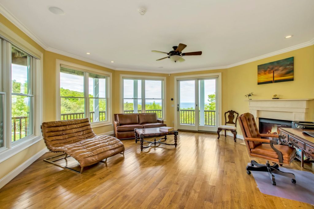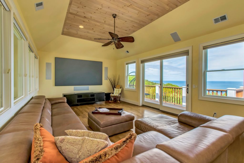 “Upstairs, you’ll find the living room, dining room, and chef’s kitchen with top-of-the-line appliances and a butler’s pantry across an open floor plan with stunning views of the Long Island Sound. There is also a media room, additional two bedrooms, two bathrooms, and Juliette balcony on this level as well,” she said.