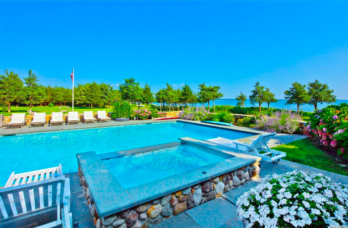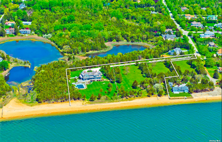 The 7,000-square foot residence located on the west side of Bayview Peninsula in Southold is surrounded by water and preserved land comprised of three Bayfront lots totaling nearly 5 acres of land and 400’ of sandy beach along the Peconic Bay.