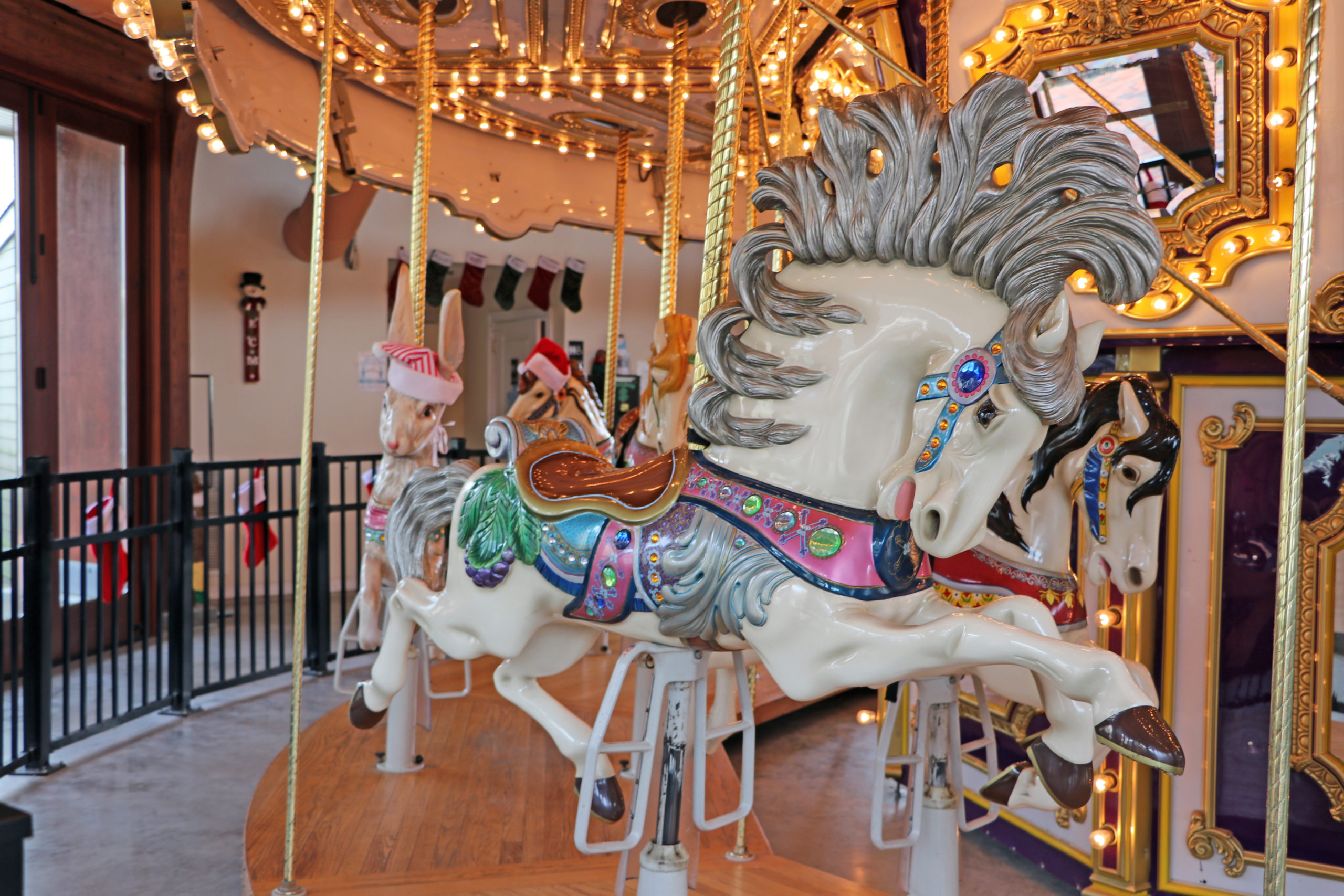 It’s also decked out for the holiday season, where you can check out light displays or admire the carousel.