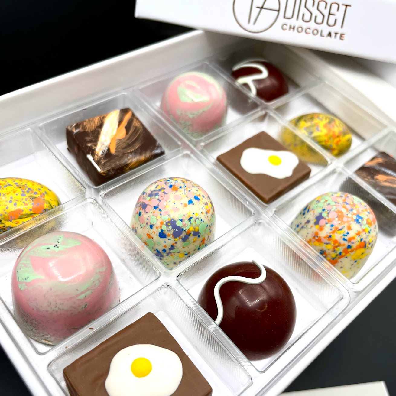 The Easter box features a few returning flavors from last year like cheesecake and sugar cookie but also new, inventive takes on spring flavors including meyer lemon and hazelnut, blood orange and dark chocolate and passionfruit caramel with toasted coconut.
