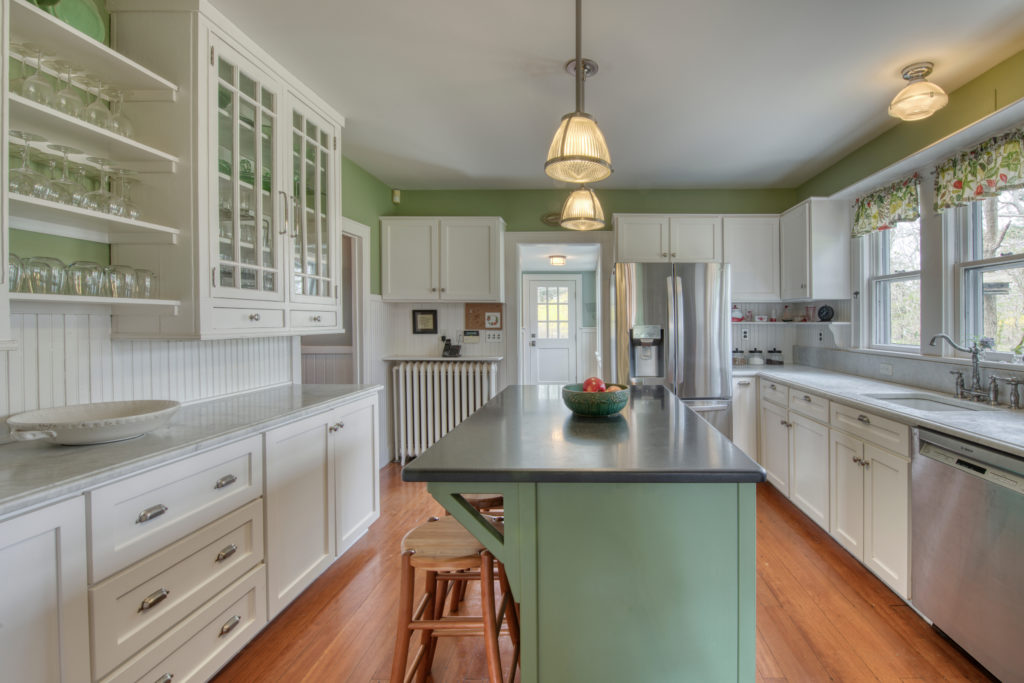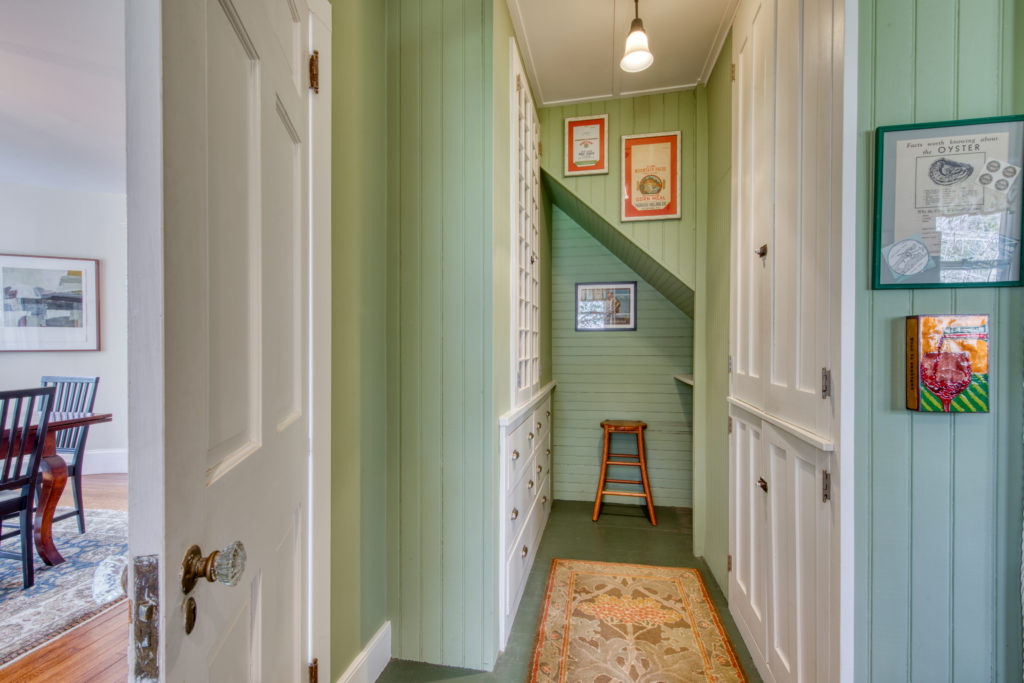“The home is so historically intact with many original features,” said listing agent Janet Markarian of Daniel Gale Sotheby’s International Realty. “The walk-through kitchen pantry, which links the kitchen and the formal dining room is my favorite feature in the home. It has its original beadboard, shelving, and glass cabinets. And just off the kitchen is the original rear second staircase in pristine preserved condition.”