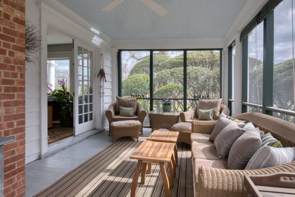 There you’ll find an updated kitchen, a formal dining room, a den with a wood-burning fireplace, a family room, a mudroom, a laundry room with a bathroom, and a screened porch.