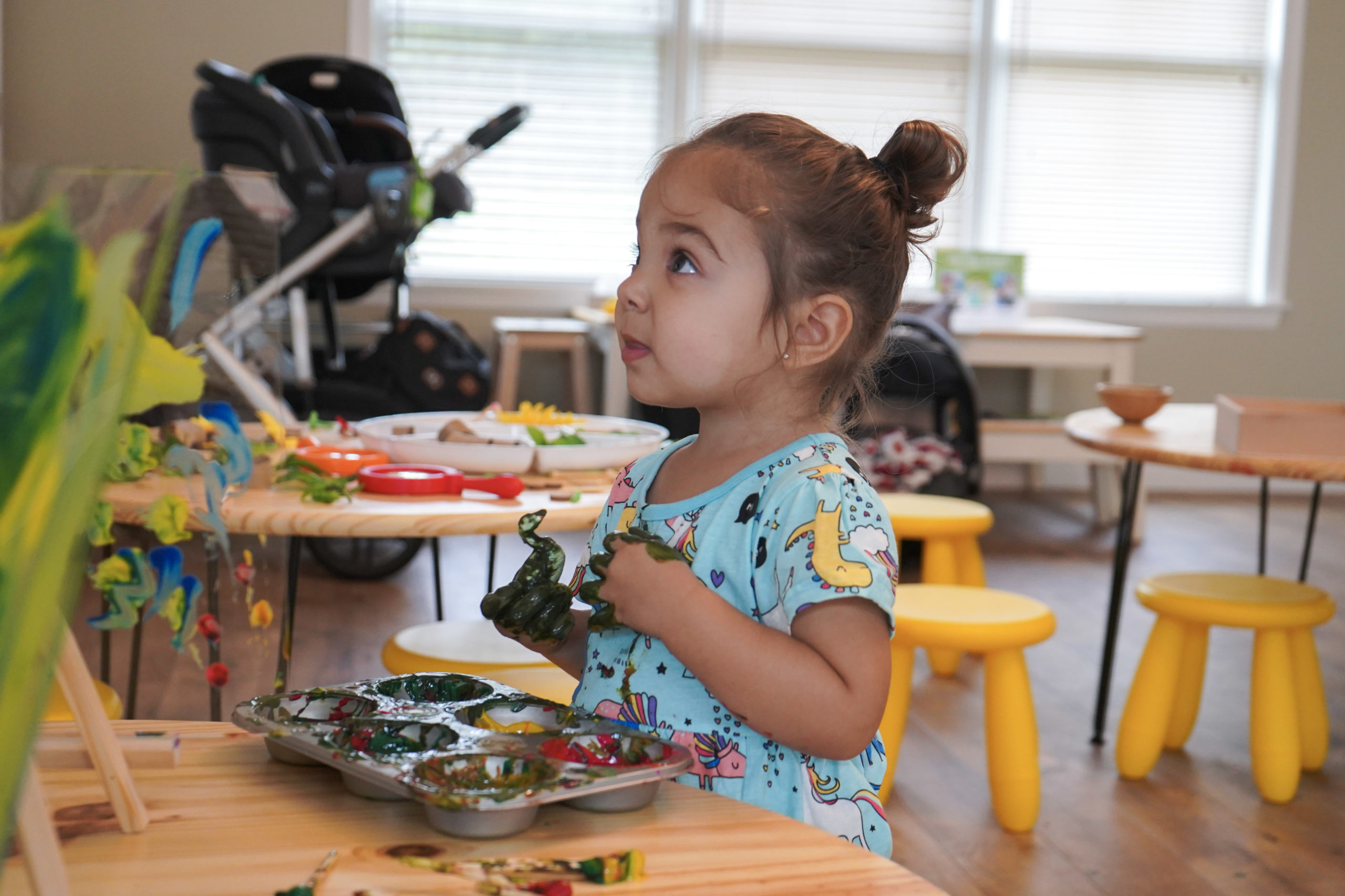 The new space opened in early September — so recent that there’s still not a sign on its storefront yet. Inside, there’s a variety of ways to play, including mommy-and-me classes, learn and play classes, play groups, birthday parties, pop up camps, and drop off date nights. From mermaid spa parties for toddlers to paint classes for tweens, the space is constantly shape shifting to meet the needs of the children and families that use it.