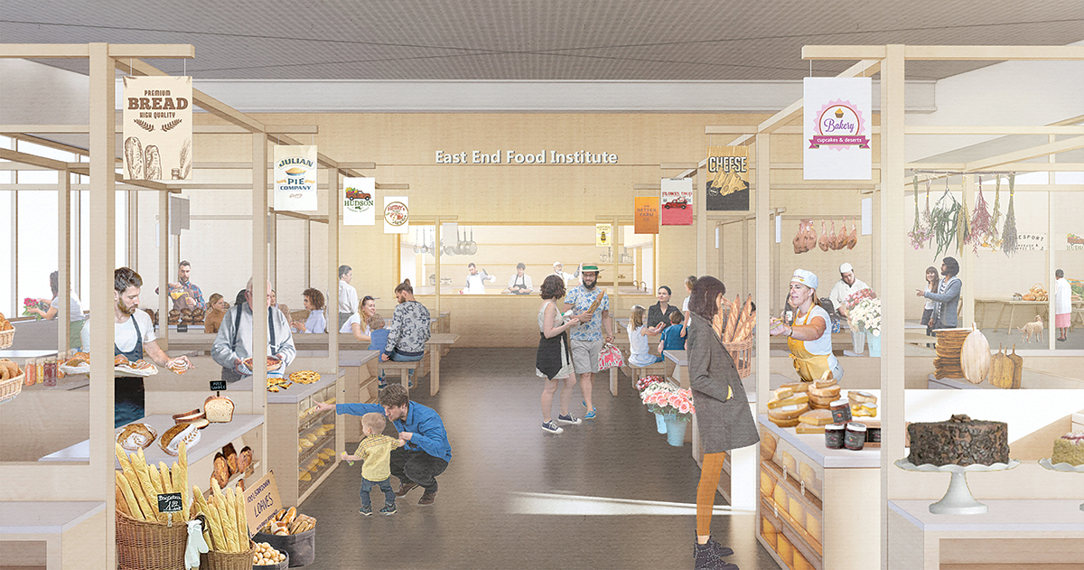 The institute is currently working with a team of architects, engineers and traffic consultants on finalizing designs for a new campus in Riverhead, which will likely be completed in phases. The first phase involves renovation of the existing 5,000-square-foot building into a community kitchen, similar to the setup in Southampton, where the institute’s team helps farms and small-scale food entrepreneurs process their products. A small, semi-permanent market with stalls is also envisioned for the existing building, with windows allowing a look into the kitchen space. “Rather than having production separated from retail, you’re getting the full picture of hyper-local ingredients coming in for small-scale producers,” Fullam explained.