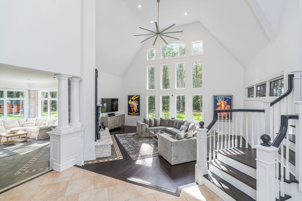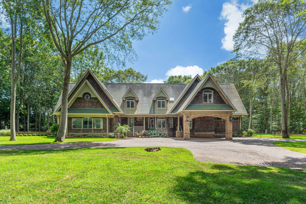 This sprawling 10,000-square foot chalet-inspired estate sits on a 5-acre lot in Mattituck.