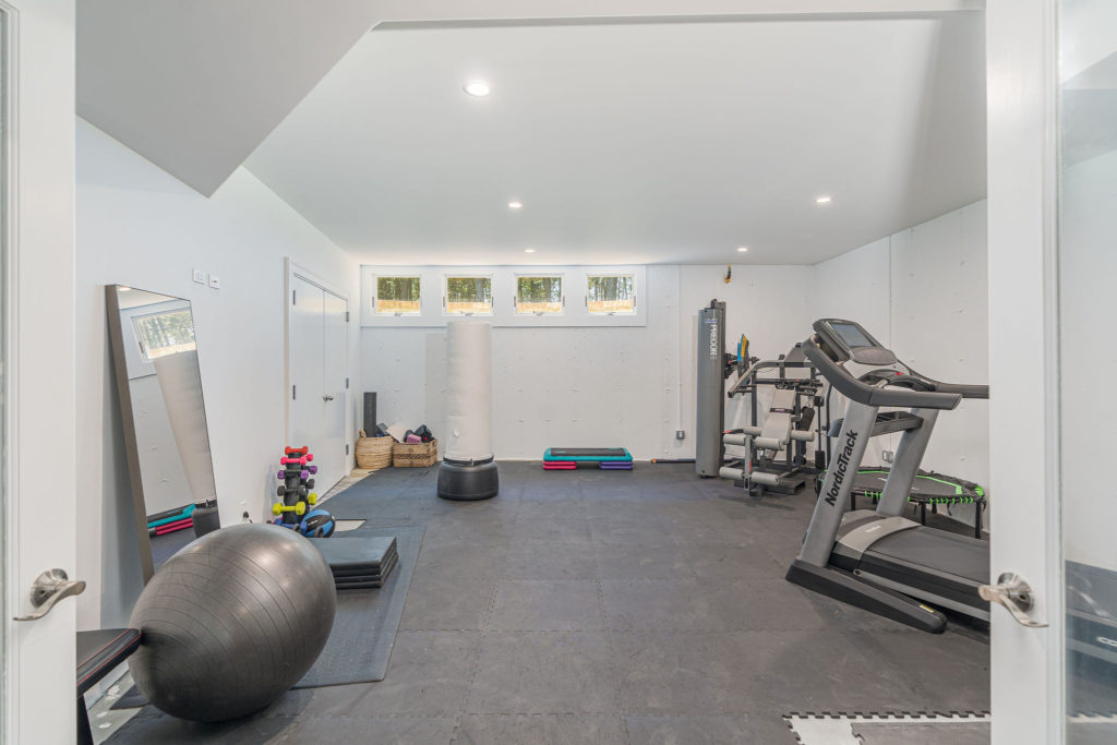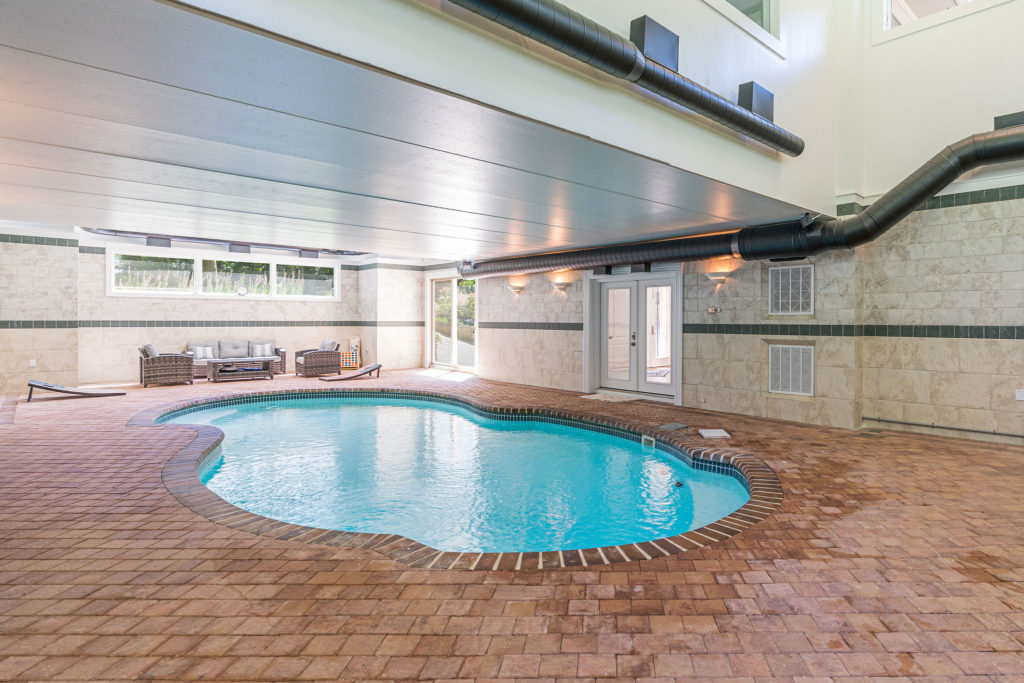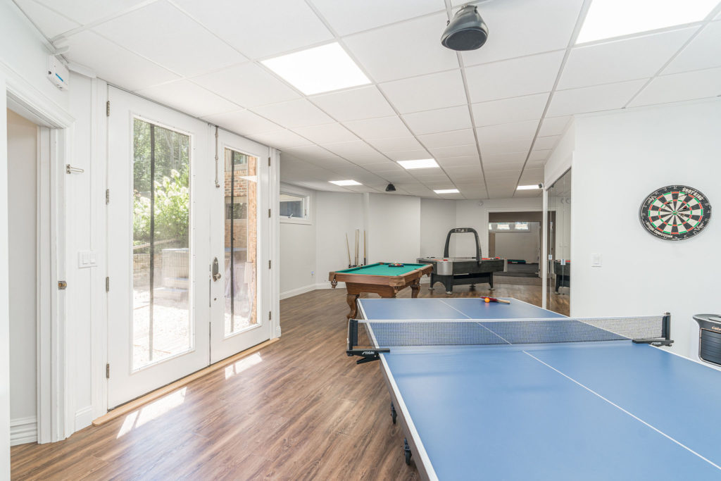 The hotel vibe is felt in areas of the estate like the home’s entire lower level. Swim in your very own indoor heated pool, decompress in the sauna, sweat it out in the home gym, entertain in the wine room with over 100-bottle storage or challenge your friends and family to a round of ping-pong in the game room. No cabin fever here.