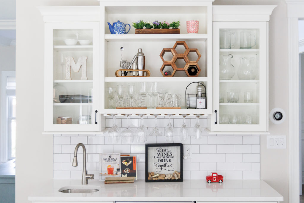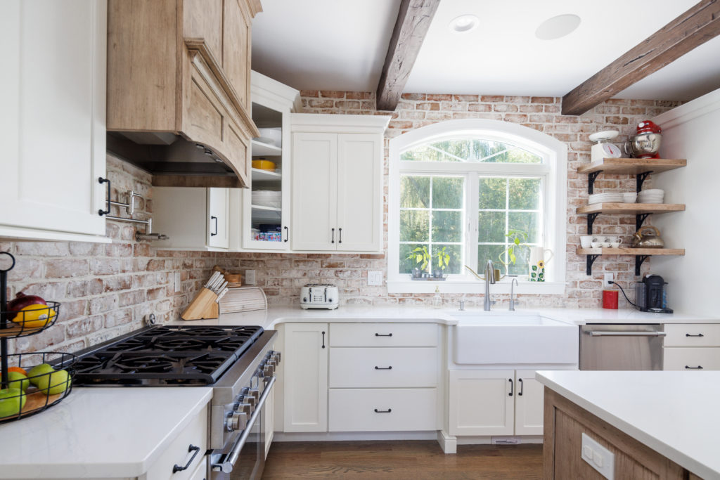 Custom molding, slate, stone and brickwork, exposed shelving, and wooden beams add such a nice touch making it feel instantly homey.
