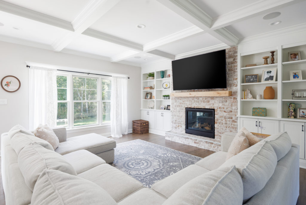 “This home was built by the owners for themselves,” Terry told us. “As such, they have thought of every detail. And it is not cookie-cutter; from the coffered ceilings to the bookshelves on either side of the fireplace, this home is complete, and they did not cut corners.”