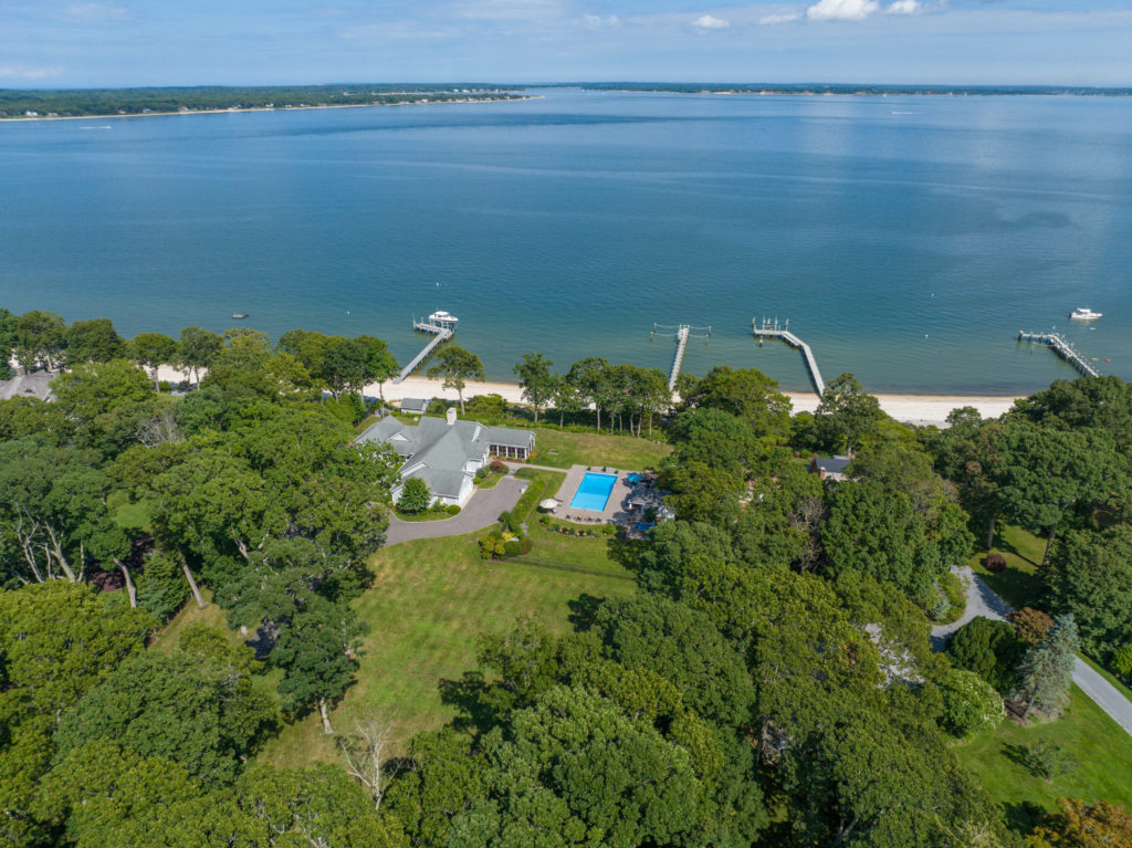 The 4,300-square-foot Nantucket-style ranch estate and gated 3.28-acre property checks all the boxes: private, waterfront with beach, outdoor living, and more.